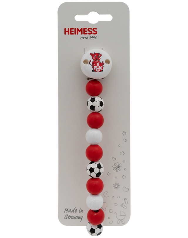 Mit der Betzi 1. FCK Schnullerkette zeigst Du schon bei den Kleinsten, für welchen Verein das Herz schlägt. Die hochwertige Holzkette kombiniert Rot und Weiß zu einem liebevollen Design rund um das beliebte Maskottchen Betzi. Sie hält den Schnuller sicher an Ort und Stelle und begleitet Deinen kleinen Roten Teufel überallhin – ob zuhause, unterwegs oder im Stadion. Sanft, robust und absolut fanwürdig wird sie schnell zum unverzichtbaren Begleiter im Alltag.